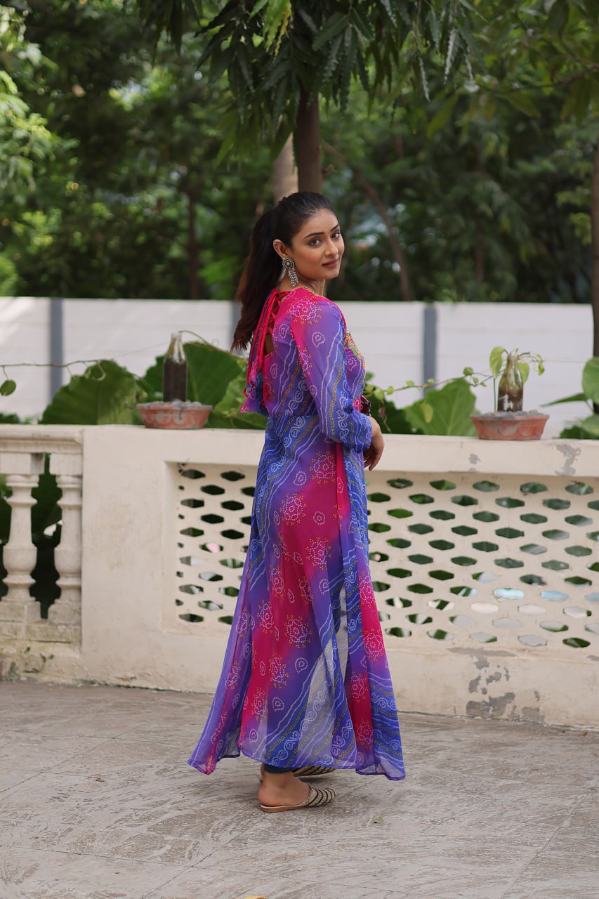 • Womenline Purpal And Pink Color Bandhani Print Navratri Kurti